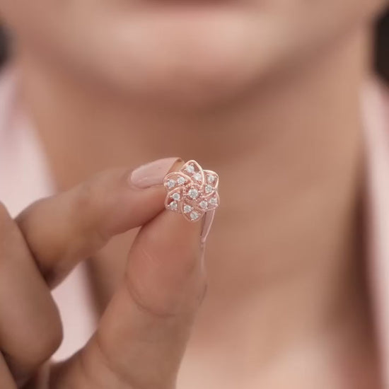 These gorgeous rose gold earrings have a flower motif set with zircons.