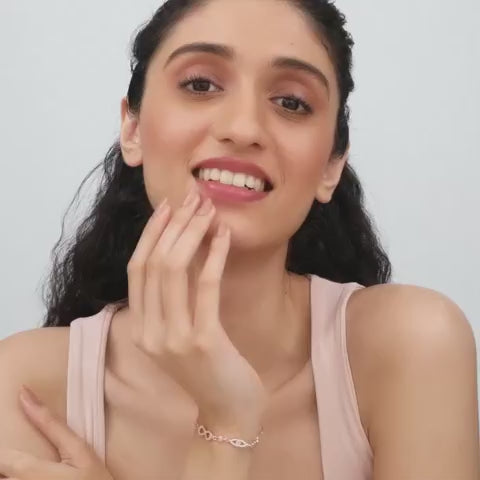 The Rose Gold Bracelet has an infinity symbol at the centre with detailed design all over.